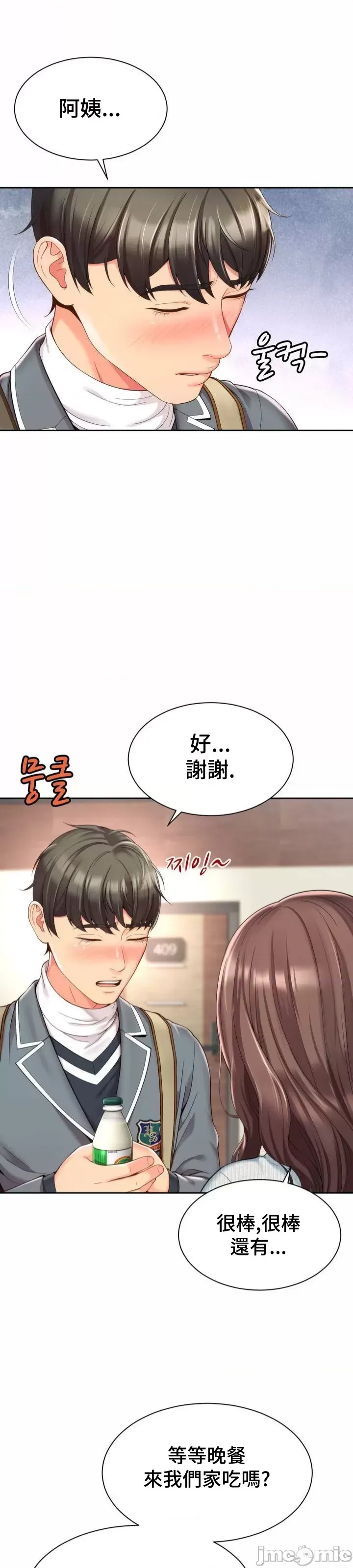 先去买杯奶茶,回来再找机会套套近乎。